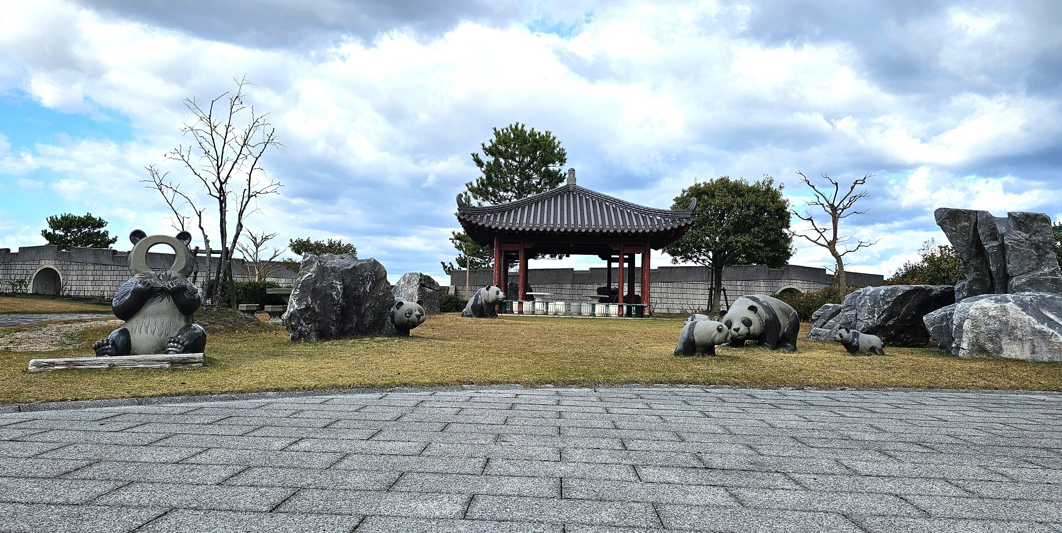 ここには石で作られたパンダの像や顔出しモニュメントが設置してあります。