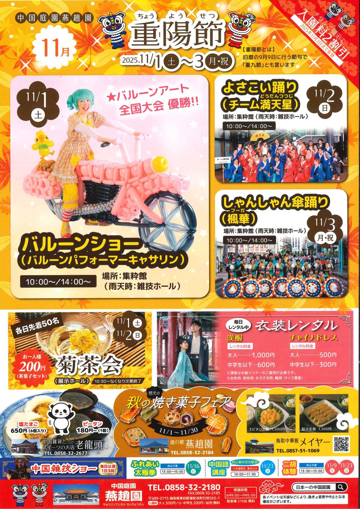 11月1日~11月3日の3日間は燕趙園の重陽節です